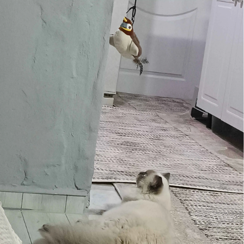 🔊 Gerçekçi Kuş Sesi – Hareket ettikçe kuş sesi çıkarır, kedinin dikkatini anında çeker.