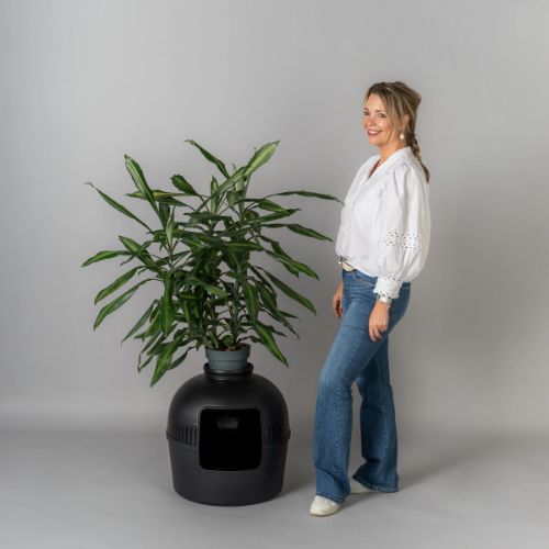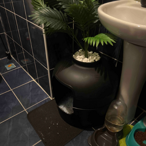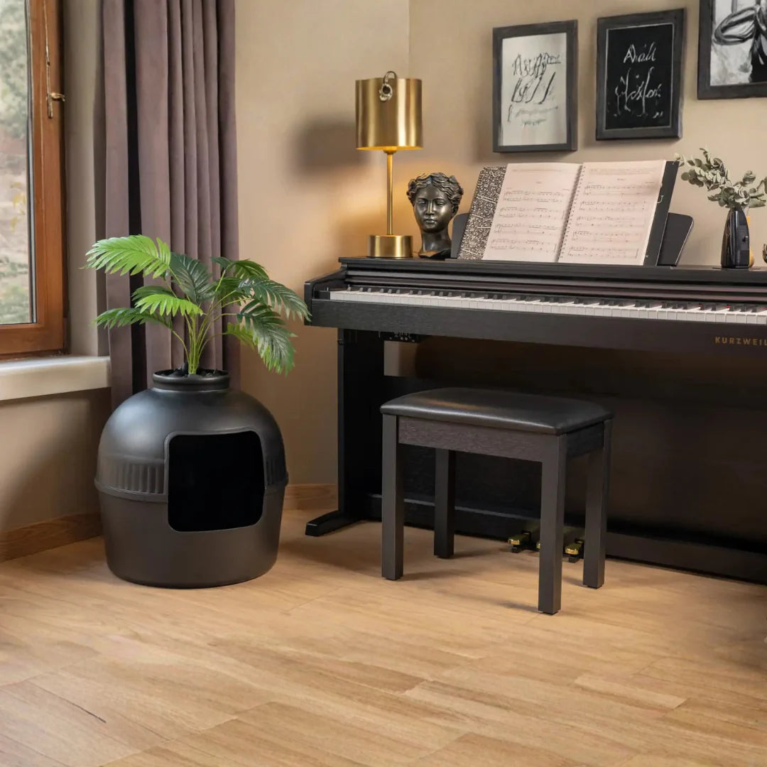 Şık ve sade tasarımıyla yaşam alanınıza uyum sağlarken, kediniz için rahat ve korunaklı bir tuvalet alanı sunar.